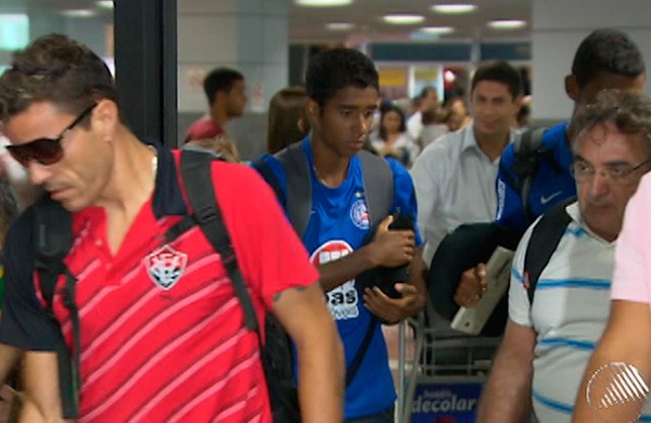 O clima foi de tranquilidade e descontração entre os dois grupos. O técnico do Bahia, Paulo Roberto Falcão, e o interino do Vitória, Ricardo Silva, trocaram um longo abraço e conversam por alguns minutos. Ricardo também conversou com o amigo Dudu Fontes, preparador físico do Bahia. Vários jogadores adversários saíram do saguão do aeroporto conversando.